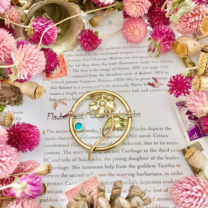 可愛的小花小品胸針在夏日裡瑩瑩綻放,框上點綴一顆少見的水藍萊茵,恰似波光粼粼的海面般,帶著活力又沁涼的氣息。雙色包金非常雅緻,尺寸合宜,很適合別在上身或帽子上啊。